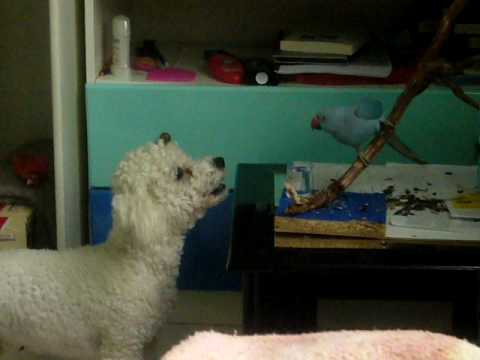 δεν είναι φυσιολογικό ένας παπαγάλος να κυνηγάει έναν σκύλο και μάλιστα ο σκύλος να τον φοβάται και να φεύγει μακρυά. Δείτε το βίντεο και βγάλτε τα συμπεράσματα σας.