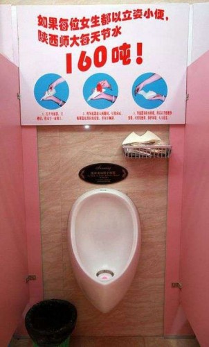 Αυτοί οι Κινέζοι έχουν βαλθεί να τρελάνουν όλο τον κόσμο. Λανσάρουν τώρα τα όρθια ουρητήρια για τις γυναίκες! Πανομοιότυπα...με τα αντίστοιχα αντρικά, αλλά λίγο μεγαλύτερα σε μέγεθος και με την συνοδεία ενός ειδικού χαρτονιού που παίζει τον ιδιο ρόλο με ένα χωνί. Ας ελπίσουμε πως τώρα που ανοίγουμε πάρε δώσε με τους Κινέζους δεν θα αρχίσουμε να αντιγράφουμε και τις ιδέες τους.